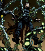 This version of the character is an OsCorp scientist who was completely paralyzed in a lab accident and later supported by a mechanical harness created by Norman Osborn. He served as Osborn'south right-paw in is the plot to replicate Spider-Human being'due south powers and thus create genetically enhanced Spider-Soldiers until betraying him for his corruption, forming his plans to destroy Spider-Human being and accept over New York and/or the earth thereafter.